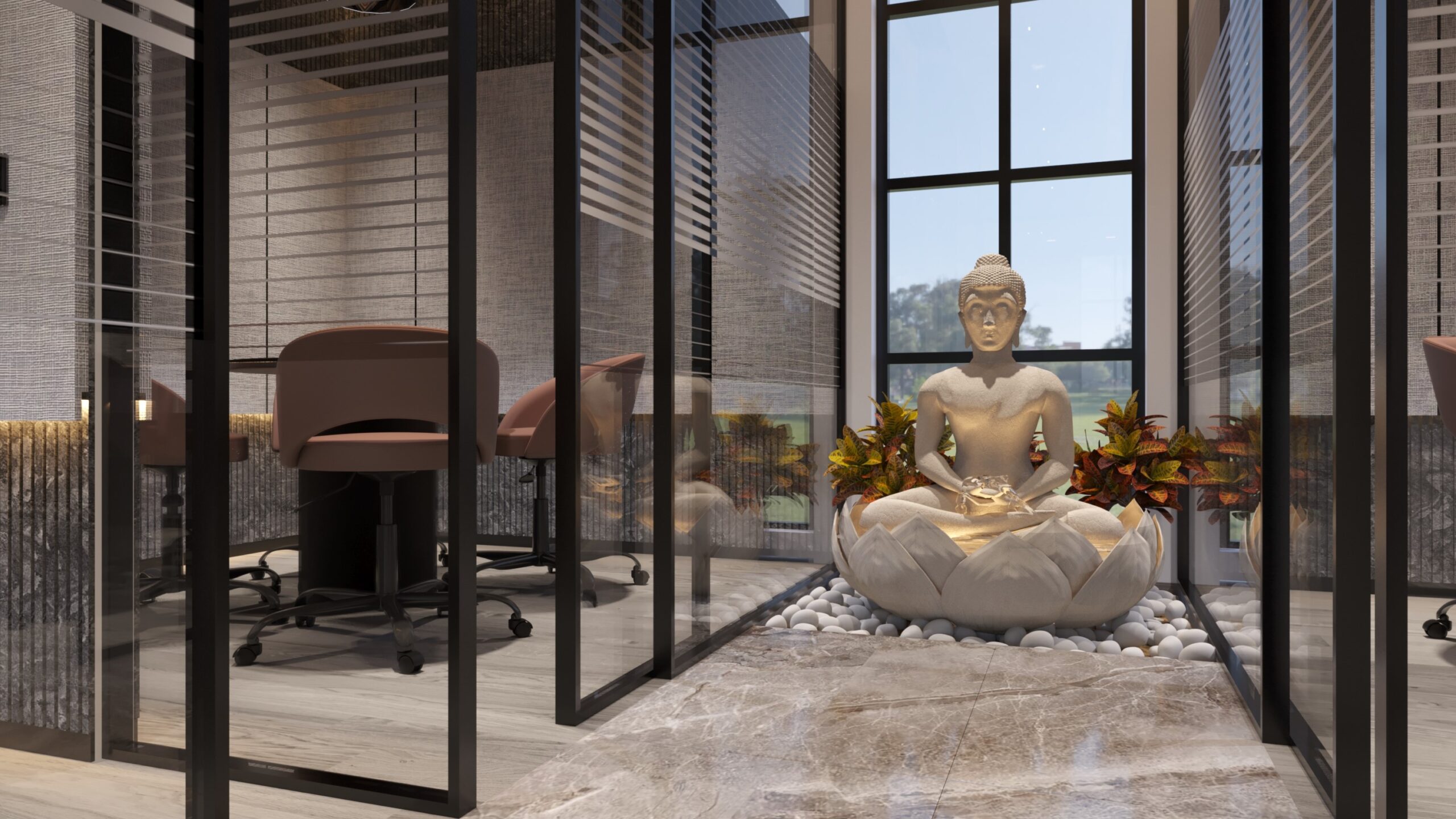 With the same ideology, our team has created a sales gallery office that embodies the latest color story of “greige” with a touch of brown, creating a warm and sophisticated atmosphere.